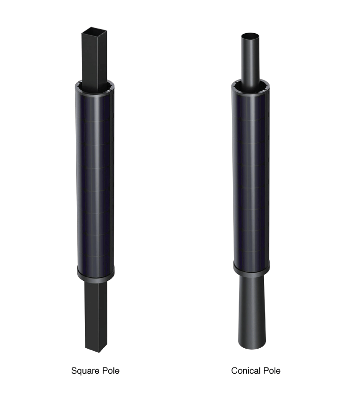 Truelite SunWrap vertical solar cylinder modules represents an innovative solution tailored for pole-mounted applications. Distinguished from conventional solar panels, poles equipped with the Truelite SunWrap cylinder exhibit exceptional aesthetic appeal, seamlessly integrating into serene environments while retaining the appearance of traditional poles.